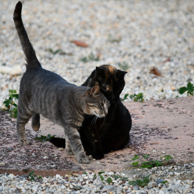 This beautiful bonded pair came to us via a very kind lady who had been feeding them after their owner died and were left with no-one to care for them. Once loved and cared for house pets, the inheritor of their owners' house did not want them and threatened to poison them. They had become semi-feral after living outside for so long. It took a while to build their trust, but they are now living their best lives at the Sanctuary. They make the cutest little gang with Henri, its wonderful to watch them all playing together.