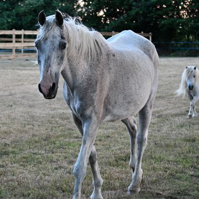 Paul is an adorable 30 year old Arab gelding whose owner sadly died and he was left for a year and a half, surviving on grass alone with no-one to care for him. The land he was living on had been sold, and it was a race against time to prepare his new home at the Sanctuary before he would have been sent to slaughter. We found his story through Facebook via the brilliant Association Le Repere [who were full] and they kindly brought him to us just in time! Paul has bad teeth so has to be fed a special soaked diet, often topped with his favourite treat, grated carrots! He loves his grooming sessions and is such a gentle soul.